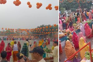 डूबते सूर्य को व्रतियों ने की अध्र्य देकर परिवारों की सुख-समृद्धि की कामना