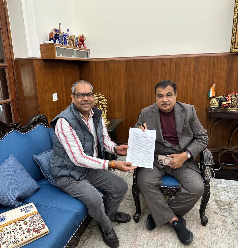 बिगड़ती सडक़ सुरक्षा, कनेक्टिविटी व बढ़ते प्रदूषण को लेकर केंद्रीय मंत्री नितिन गडकरी को सौपा ज्ञापन
