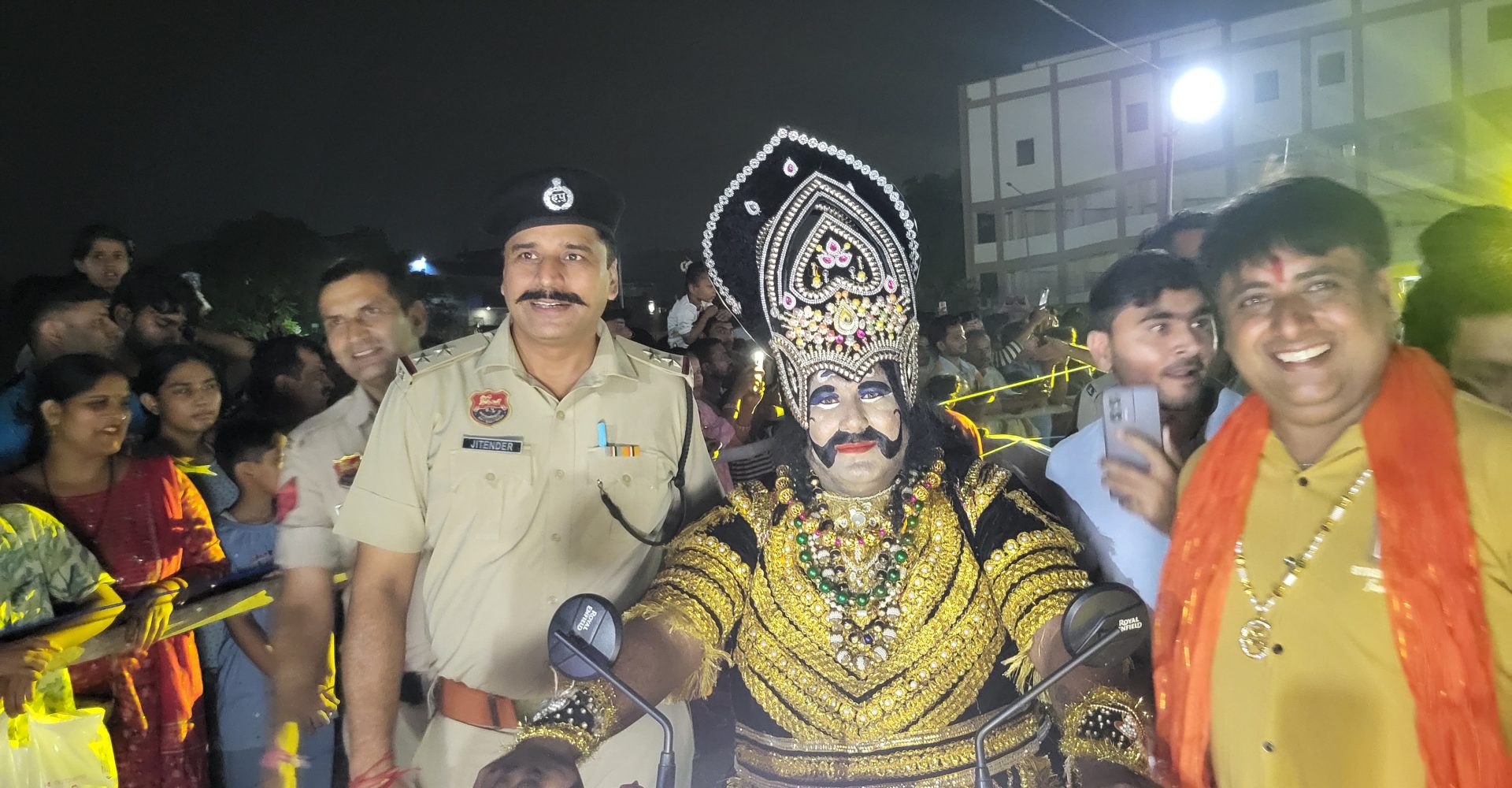 बुलेट पर सवार रावण बने दर्शकों के सेल्फी किंग।