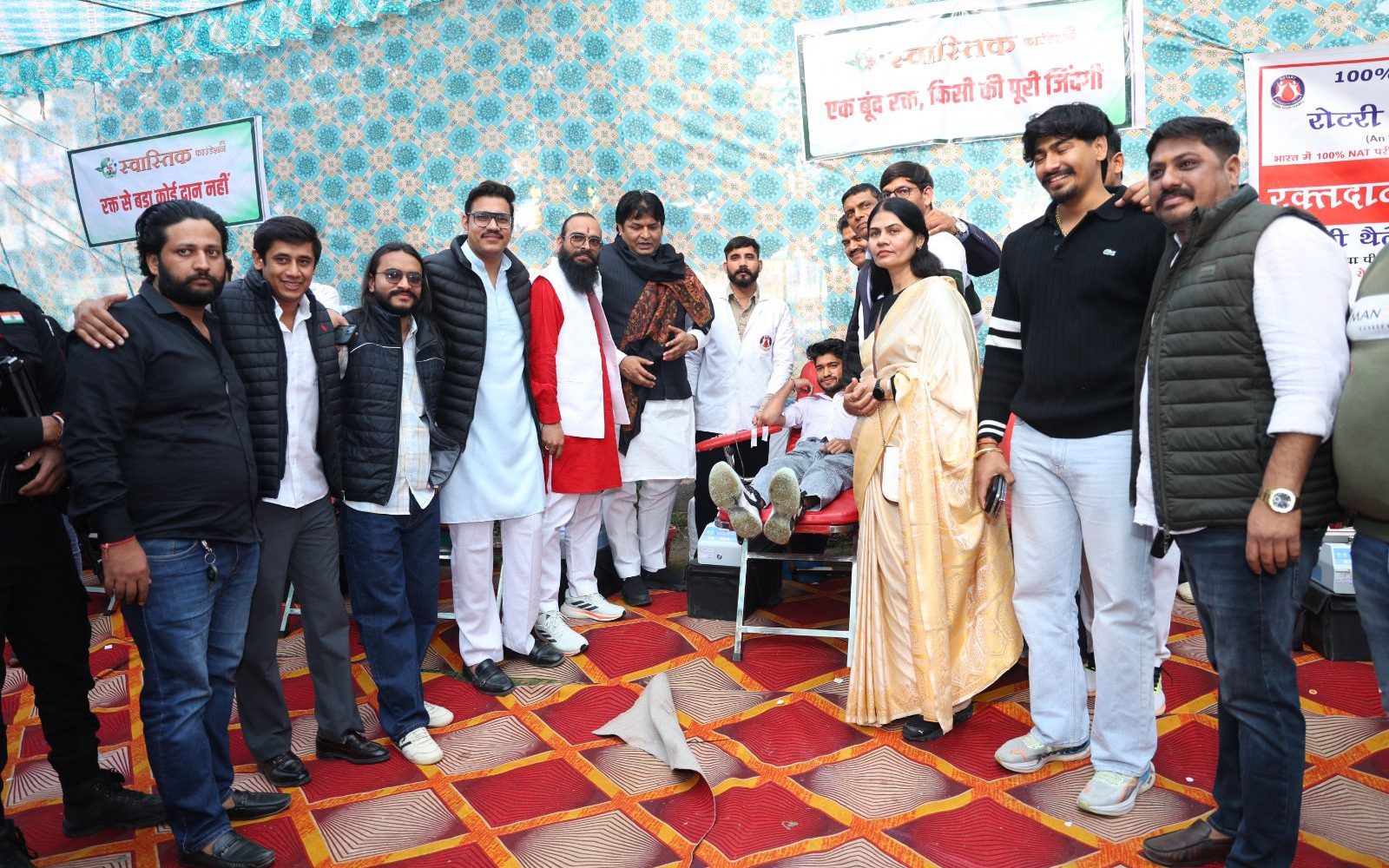 गुरुग्राम।सामाजिक संस्था स्वास्तिक फाउंडेशन द्वारा मेदांता फाउंडेशन के सहयोग से सैक्टर 5 स्थित शिवा पार्क में रक्तदान व निशुल्क स्वास्थ्य जांच शिविर का आयोजन किया गया। शिविर में जहां 321 यूनिट रक्त एकत्रित हुआ, वहीं बड़ी संख्या में लोगों ने अपने स्वास्थ्य की भी जांच कराई। संस्था के संस्थापक अध्यक्ष राज सैनी बिसरवाल ने बताया कि शिविर में मुख्य अतिथि के रुप में स्थानीय विधायक मुकेश शर्मा व विशिष्ट अतिथि के रुप में श्रीमाता शीतला श्राइन बोर्ड के सीईओ सुमित कुमार, भाजपा जिलाध्यक्ष सर्वप्रिय त्यागी, समाजसेवी तिलकराज मल्होत्रा, पार्षद रेखा सैनी, दलीप साहनी, परमिंदर कटारिया, प्रियवर्त कटारिया आदि शामिल हुए। विधायक मुकेश शर्मा ने संस्था के प्रयासों की सराहना करते हुए कहा कि रक्तदान सबसेे बड़ा दान है। रक्त की कुछ बूंदें मरणासन्न व्यक्ति को जीवनदान दे सकती हैं। उन्होंने आमजन से आग्रह किया कि जब भी कोई ऐसा शिविर लगता है तो वहां पर अधिक से अधिक रक्तदान किया करें। संस्था के संरक्षक बनवारी लाल सैनी का कहना है कि संस्था का उद्देश्य है कि युवाओं को सही मार्ग पर चलाकर उन्हें समाजसेवा के कार्यों से जोड़ा जाए। रक्तदाताओं सम्मानित भी किया गया। शिविर में लोगों को प्लास्टिक मुक्त गुरुग्राम बनाने का संदेश देते हुए उन्हें कपड़े के बैग वितरित किए गए।