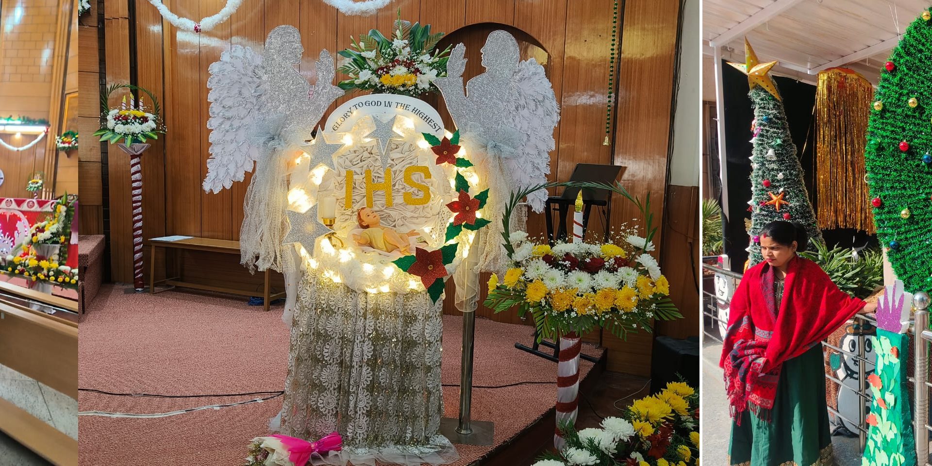गुरुग्राम। ईसाई समुदाय द्वारा वीरवार को प्रभू यीशू मसीह के जन्मोत्सव के उपलक्ष्य में क्रिसमस के पर्व की साईबर सिटी में धूम रही। शहर के विभिन्न क्षेत्रों स्थित चर्चों में क्रिसमस के अवसर पर विशेष प्रार्थना सभा का आयोजन किया गया, जिसमें समुदाय से जुड़े लोगों ने भाग लिया। चर्च को रोशनियों, कैंडल्स, सांता क्लॉज आदि से सजाया गया था। ईसाई समुदाय के लोगों को बाईबल से संबंधित प्रसंग सुनाए गए। हिन्दी एवं अंग्रेजी में कैरोल गायन हुआ। सिविल लाइंस क्षेत्र स्थित एपिफेनी चर्च के पादरी के मुताबिक क्रिसमस पर्व से पहले से ही चर्च में विभिन्न कार्यक्रमों का आयोजन शुरू हो गया था, लेकिन बीती देर शाम प्रार्थना सभा के साथ शुरू हुआ। रात में 11 बजे से ही प्रार्थना सभा शुरू हो गई। अद्र्धरात्रि को चर्च का घंटा बजाकर प्रभु के जन्म का उद्घोष किया गया। इस उद्घोष के साथ ही चर्च से जुड़े लोगों ने कैरोल गाते हुए नृत्य किया तथा खुशियां मनाई। इसी प्रकार कन्हई स्थित चर्च ऑफ इमाकुलेट कंशेप्शन एवं न्यू कालोनी चर्च में भी क्रिसमस पर्व बड़े धूमधाम के साथ मनाया गया। चर्च के फादर ने बताया कि लोगों ने साइलेंट नाइट होली नाइट ऑल इज कम ऑल इज ब्राइट, आया मसीह आया, बेथलहम के गौशाला में जन्मा हमारा येशु राजा, तेरी जय जयकार अमन के राजकुमार आदि कैरोल गाए। चर्च परिसर को क्रिसमस ट्री, फूल पौधों, क्रिब, उपहार बैलून से सजाया गया। चर्च परिसर में गौशाला, ईसा मसीह के जन्म पर खुशियों के गीत गाते चरवाहों की झांकियां बनाई गई।