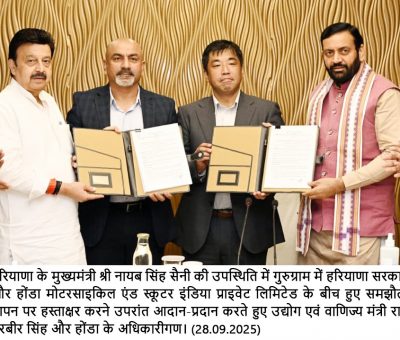 Read Moreमुख्यमंत्री नायब सिंह सैनी की मौजूदगी में सीएंडी वेस्ट मैनेजमेंट के लिए होंडा कंपनी के साथ हुआ एमओयू